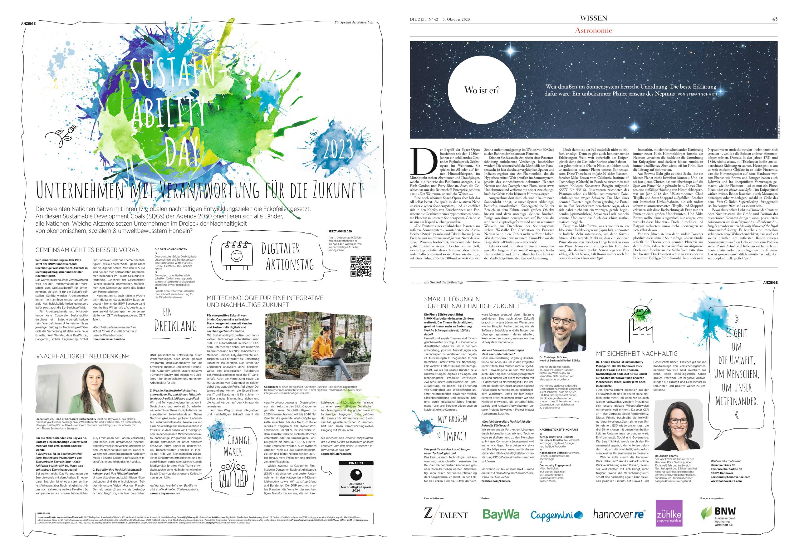 Schaut hier auch in der Sonderveröffentlichung der ZEIT zum Sustainability Day vorbei und lest welche Nachhaltigkeits-Strategien unserer Partner BayWa r.e., Capgemini, Zühlke Engineering GmbH und Hannover Rück verfolgen.